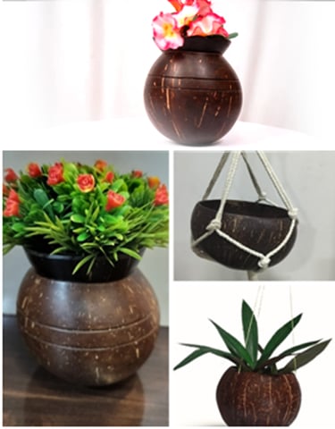 Sustainable coconut shell planters that nurture plants while caring for the Earth.